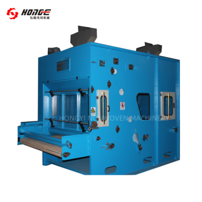 alimentent la fibre livréepar l'ouvreur principal. Le rouleau égaliseur éliminera l'excès de fibre et le stripper dépouillera la fibre, puis les fibres tomberont dans la cabine vibrante. LeDémarrage-Arrêtdupic et du treillis obliquesera contrôlé par la cellule photoélectrique pour assurer le cubage et l'équilibre des fibres.3. Comme il existe de nombreux types de fibres, la fibresuspendueapparaîtra dans le